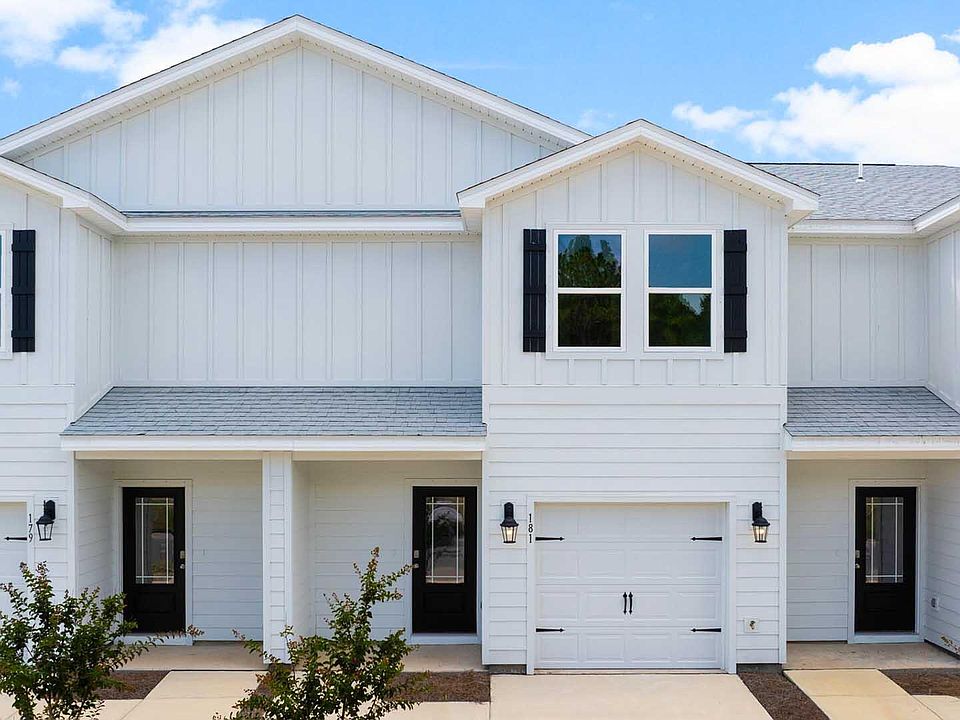 Welcome to 30 Rudder Lane at Genoa Landing Townhomes in Freeport Florida. This is an interior unit that is located in a four unit building that is under construction. As you enter this townhome you will find a hall with EVP flooring that leads to an open-concept kitchen, living, and dining area, designed for entertaining and everyday living. From the dining area you will have access to the back patio and there is window that will illuminate the living area with natural light. The kitchen serves as the culinary center with its spacious center island and cabinetry for storage as well as a pantry. The kitchen has been appointed with stainless appliances including a stove, microwave and dishwasher and granite countertops From the heart of the home on the main level, continue to the second level where you will find carpet on the stairs, upstairs hall and each bedroom. The primary bedroom has a generous size closet and a private bath with shower, dual sink vanity, and ample linen storage space. The additional bedrooms share a hall bath with shower tub combo, creating a comfortable space for family or guests. You will also have a laundry area on the second level with space for a full-size washer and dryer. Each townhome comes with the Smart Home Technology Package, featuring a Qolsys IQ touch panel for thermostat and lighting control, ensuring security and convenience with a keyless KwikSet deadbolt.