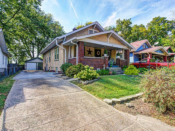 Comfy, cozy home on a quiet, neighborly street, near historic Irvington. Living on a no-thru road, means no loud traffic zipping by! Enjoy peaceful mornings w/ a cup of coffee & evenings with your favorite cocktail, on the size-able covered front porch. Recently asphalted drive way leads back to the detached garage; currently being used as a workshop. Enjoy spending time in your large private, fenced backyard, w/ a fire pit, mature trees AND in the Spring smell the sweet Lilac bush as it blooms! Additional outdoor entertainment spot with the paver patio out back, as well! You'll love the original hardwood floors, new carpet in bedroom 2, newly tiled tub surround and bathroom floor. Bedroom 1 has additional storage spot. Kitchen is updated with SS appliances, new countertops and has a dedicated pantry. Formal dining area, off the kitchen opens to the entry and living room. Basement is large with 3 functional & useful spaces! The Bonus room is currently being used as an artist's studio, the middle room contains the laundry & mechanicals, 3rd room has built-in shelves with plenty of storage, sink and an extra freezer that conveys! Gas Furnace 2021, Gas Water heater 2021, AC 2021