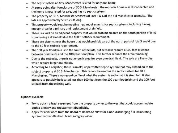 There is currently no septic system, the property is not currently livable! Please see photo of septic issues per the City Count Health Department.