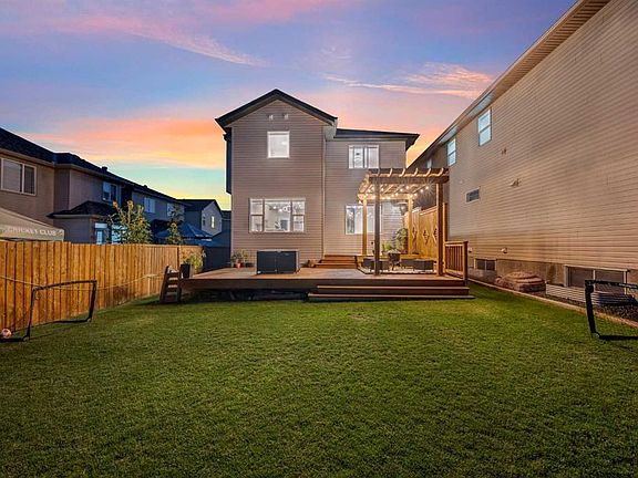 THIS ONE OFFERS MUCH MORE THAN COMPARABLE LISTINGS, BEST VALUE FOR YOUR MONEY! - Welcome to your next detached home in Skyview, TUCKED AWAY IN A QUIET CUL-DE-SAC, VERY WELL MAINTAINED by current owners and now ready for the next chapter. 2246.57 Sq. Ft. | 2 Bedroom Rented Basement Suite (Illegal Suite) | SPACIOUS 4,886.82 SQ. FT. LOT | OVERSIZED EXPOSED AGGREGATE DRIVEWAY | Ceramic Tiled Main Floor | Built-In Kitchen Appliances | Stone Fireplace Wall | Front Bonus Room | Full Width Balcony | Professionally Landscaped Backyard and much more. Inside, the main floor offers an open-concept layout with a WELCOMING FOYER and a thoughtful layout of living, kitchen and dining area. The living room features a COZY GAS FIREPLACE SET ON A FULL STONE FEATURE WALL, and a MODERN KITCHEN WITH QUARTZ COUNTERTOPS, BUILT-IN APPLIANCES, ELECTRIC COOKTOP ON ISLAND WITH STYLISH HOOD FAN, WALK-THROUGH PANTRY, AND UNDER-CABINET LIGHTING. Elegant details such as METAL SPINDLE RAILING and CONTEMPORARY LIGHT FIXTURES elevate the entire space. Upstairs you’ll find three spacious bedrooms, two bathrooms, A FRONT-FACING BONUS ROOM WITH BALCONY ACCESS, and a convenient upper-level laundry room. The primary ensuite is a retreat of its own with a SOAKER TUB, DUAL VANITIES, WALK-IN CLOSET, MAKE UP COUNTER WITH ADDITIONAL DRAWERS AND AN UPGRADED 2 SIDED GLASS STANDING SHOWER. The bright basement offers an excellent income potential or space for extended family, as it has been professionally developed to a 2 BEDROOM SUITE (Illegal Suite), featuring its own separate laundry, bathroom with upgraded standing shower and kitchen with cabinets to the ceiling. The PROFESSIONALLY LANDSCAPED BACKYARD is a true outdoor oasis, featuring a PERGOLA, TWO-TIER DECK, BUILT-IN POND, UNDERGROUND WATER SPRINKLERS, PERENNIALS, BBQ GAS LINE, AND HOT TUB PLUG-IN READY CONCRETE PAD for year-round enjoyment. ADDITIONAL FEATURES include a Central Vacuum System, Water Softener, Security Cameras with 360 view & Smart Doorbell, Smart Thermostat, Kitchen Insinkerator, Garage Gas Line, and a Motion Sensor Light. With nearby Prairie Sky School, Nelson Mandela High School, shopping across Country Hills Blvd, and quick access to Metis & Stoney Trail, this location offers unmatched convenience. Don’t miss this amazing opportunity, check the 3D tour and book your showing today.