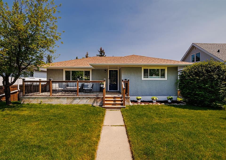 Welcome to this thoughtfully renovated 4-bedroom, 2-bath bungalow offering over 1,900 sq. ft. of beautifully finished living space in one of Calgary’s most desirable inner-northwest communities. Inside, natural light fills the open-concept main floor, blending modern design with timeless comfort. The stunning kitchen showcases sleek two-tone cabinetry, quartz countertops, a large island with seating, and stainless-steel appliances—perfect for everyday living or entertaining. The spacious living room enjoys views of mature trees through a picture window and a cozy gas fireplace, while the adjoining dining area provides the perfect setting for family dinners. Two generous bedrooms and a stylish 4-piece bathroom complete the main level. The fully developed lower level brings exceptional versatility with two additional bedrooms, a full bathroom, a comfortable recreation area with wet bar, and a bright laundry room—ideal for families, guests, or a work-from-home setup. Step outside to enjoy multiple outdoor spaces: a large front deck perfect for morning coffee, a private rear patio with fire-pit area, and a rare rooftop patio above the garage—a peaceful retreat for evenings under the stars. The attached single-car garage and additional off-street parking add year-round convenience. With a newer furnace, hot water tank, windows, A/C, roof, and sewer line, all the big-ticket items have been taken care of, giving you complete peace of mind. Located on a quiet, tree-lined street, this home is just minutes from Confederation Park, SAIT, the Winter Club, and downtown. With quality craftsmanship, smart updates, and a welcoming atmosphere, this home delivers modern living in a mature, established neighbourhood.
