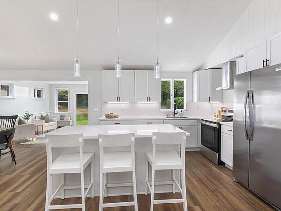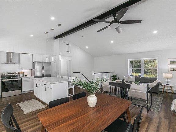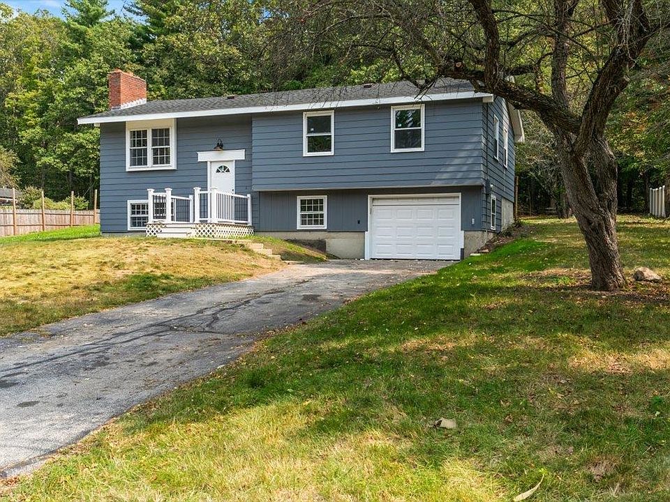 BACK on market due to buyer financing falling through ! Welcome to your beautifully renovated home in picturesque Derry, tucked away at the end of a quiet cul-de-sac.Completely gutted and updated with modern finishes, this property offers worry-free living with every detail thoughtfully updated. The main level showcases a stunning open-concept kitchen and living area. The kitchen features granite countertops, a spacious island, and brand-new stainless steel appliances—perfect for cooking and entertaining. The living room centers around a cozy fireplace and opens into a sun-filled bonus room with skylights and backyard views, creating a warm and inviting space to gather. A newly renovated bathroom and three freshly painted bedrooms complete this floor. The finished lower level expands your living options with two flexible rooms ideal for an office, gym, or guest space, along with two utility rooms, laundry hookups, storage, and direct access to the one-car garage. Step outside to enjoy the large, level backyard—perfect for entertaining—with a concrete patio and oversized storage shed. Major updates include a brand-new roof, water heater, heating system, most windows, and fresh exterior paint (all 2025). Connected to town water and sewer, you’ll enjoy low-maintenance living with no septic concerns. This move-in-ready home blends comfort, style, and peace of mind—all in a desirable Derry location.