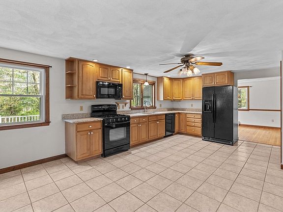 Welcome to this well-maintained Gambrel Colonial, ideally situated on a beautiful, tree-lined lot in one of Georgetown’s most desirable areas! The main level boasts a spacious eat-in kitchen with plenty of room for an island, a sun-filled living room with a cozy fireplace, a separate dining room, and a family room featuring a charming gas fireplace—perfect for relaxing evenings. A convenient half bath completes the first floor. Upstairs, you'll find a generously sized primary bedroom with wood floors and double closets, a full bathroom with double sinks, and three additional comfortable bedrooms. Need more space? The full basement includes a finished area ready for your ideas! A detached two-car garage provides ample storage and parking. Head outside through the fantastic 3 season sun room with slate floor to a large composite deck overlooking a private backyard—perfect for gardening, entertaining, or simply enjoying nature!