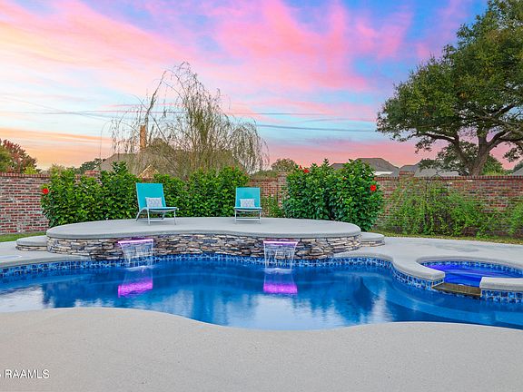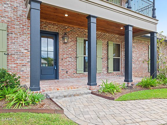 Stunning 5-year-old custom-built home located in the gated community of Shadows Bend in New Iberia. From the moment you arrive, the grand curb appeal is undeniable--featuring a cobblestone circular driveway, lush landscaping, and a brick-paved front porch! The foyer is warm and inviting, flanked by two separate living areas. One offers a sliding barn door and wood accent wall, while the second showcases a brick gas-log fireplace with custom wooden built-ins. The spacious kitchen overlooks the backyard oasis through floor-to-ceiling windows and features custom wood cabinetry, brick paver flooring, granite countertops, stainless steel appliances, and designated area for a dining table. A large walk-in pantry with shelving and a small sink sits just off the kitchen, along with a laundry room offering ample storage. The primary suite is a true retreat, designed with a unique dual-bathroom layout. One bath features a vanity area, tiled walk-in shower, and a generous walk-in closet. The second bath includes a large vanity, freestanding tub, its own walk-in closet, and an additional flex room perfect for extra storage, a reading nook, or more. The downstairs also includes a half bath and a guest bedroom with an en-suite bath and spacious walk-in closet. Upstairs, you'll find a large loft area, two additional guest bedrooms--each with their own en-suite bathroom, walk-in closet, and access to the upstairs balcony. This level also offers a designated storage room with built-ins and an additional flex space ideal for an office, home gym, or hobby room. Moving outside to your private backyard retreat, complete with a brick-paved covered patio and sparkling fiberglass pool with hot tub. A fully bricked fence with double-gate access provides privacy and entry to the backyard. The expansive garage features three vehicle bays plus a fourth bay offering a storage room and extra space for equipment, golf carts, lawn tools, and more. Schedule your showing TODAY!