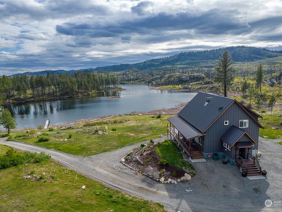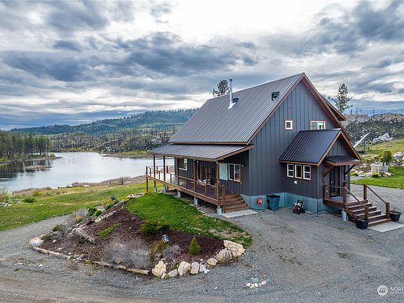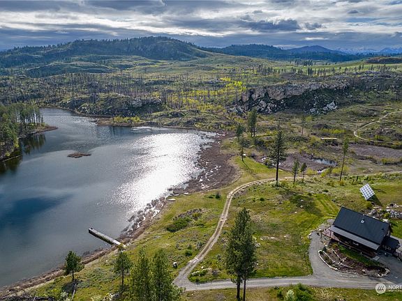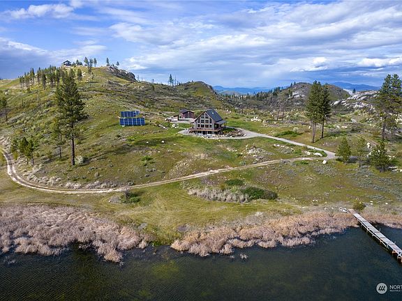A once in a lifetime opportunity awaits at Shalberg Lake! Over 60 acres & 1200+ft of private lakefront, beauty and recreation are limitless. A wall of windows greets you as you enter this stunning home with top floor Primary w/bath & striking loft entrance. The spacious Great Room w/pellet stove provides unadulterated views of the lake & mountains beyond. There are 2 bedrooms, pantry and laundry/mud room on the main floor. Downstairs is a wide open space perfect for entertainment w/1/2 bath, gas stove & mechanical room. The home is completely off-grid with an impressive solar system & 2 back up generators. There is also a fenced garden and large shop. Waterfront, views, acreage & a gorgeous 2017 home...Life Truly is Better at the Lake!!