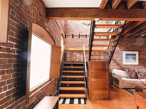 Spectacular free-standing two-level brick single family house that lives like a loft in the heart of historic College Hill. One-of-a-kind industrial property, originally constructed between 1911 and 1914 as a soda bottling plant for the Puritan Bottling Company. 2,400 square feet of living space with three bedrooms and 1.5 bathrooms. Wonderful wide plank floors, exposed wood-beamed ceilings, red brick walls, skylights, and a suspended contemporary staircase leading to the second floor. Large living room space with custom built-ins, and a red brick wood-burning fireplace. Restaurant style kitchen with open shelving and a large chef's range. Spacious master bedroom with recessed lights, slider doors, and wood-burning stove. New wall to wall carpet throughout second floor. Stone patio with large yard for summer entertaining. Walk to universities, Brown med school, India Point Park, Providence waterfront, and all the Capital City has to offer. A very rare gem!