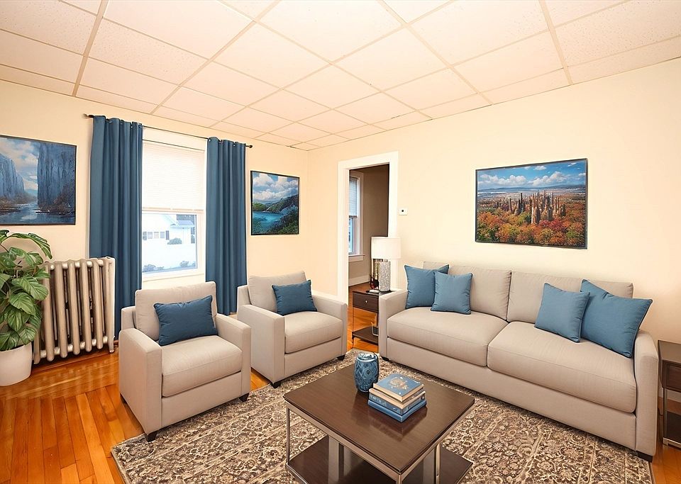 Welcome to 30 Sheppard Ave, a well-maintained duplex offering the perfect blend of comfort and convenience. This property features beautiful hardwood floors throughout the sun-drenched living room, a formal dining area perfect for entertaining, and a semi eat-in kitchen with adjacent bathroom. The full basement provides ample storage plus washer/dryer hookups for your convenience. The thoughtfully designed layout includes two generously sized bedrooms upstairs with good closet space, plus a versatile third room ideal as a home office or den. Private off-street parking adds to the appeal of this exceptional rental opportunity.Located in an established neighborhood known for its family-friendly atmosphere and strong sense of community, this property offers quick access to local shops, restaurants, and the commuter rail with convenient highway connections for easy Boston commutes. Strong credit and references are a must, non-smoking, no pets are permitted. Schedule your tour today!