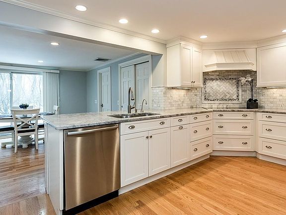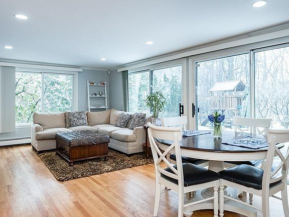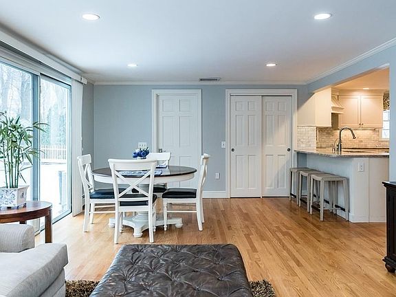 Tastefully updated Garrison Colonial in a popular family neighborhood. This move-in ready home features an updated kitchen that has everything you're looking for; including granite counters, double ovens and induction stove. The spacious, bright family room overlooks a flat backyard that abuts conservation land. Sliding doors in the family room bring you to a bluestone patio. There is a spacious living room with fireplace and dining room with built-ins. The second level features a generous master suite with full bath and walk-in closet. There is also plenty of room for family and guests with four additional bedrooms, a renovated full bath, and laundry. The finished lower level offers ample play space and storage. Must have for many families, a mudroom and a 2 car garage. Easy walk to the Fells Market area for grocery, dry cleaning, ATM, etc. Don't miss this wonderful home in a terrific location for your family!