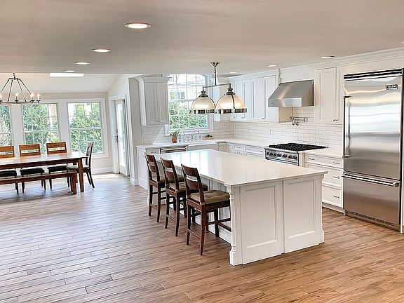 MASSIVE, bright, and fully remodeled (2016) ranger ranch in the heart of prestigious Merrick Woods. Features two owner suites w/ en suite. 1st Floor - open plan, EIK, Viking appliances, wine fridge, pot filler, huge island, built-in microwave, TV room, radiant heat, Owner Suite w/ En Suite, another large BR, and a Full BA. 2nd - Beautiful Owner Suite w/ En Suite, large his/hers walk-in closets. Two more large bedrooms upstairs with a jack 'n' jill BA. Laundry room with sink, table, and hanging rack. House equipped w/ fireplace, inground sprinklers, new electric, gas, radiant heat, alarm system, NAVIEN, and cable/CAT6 wiring throughout. Large backyard w/ patio and gas line. Accessible to train, shopping centers, town, pharmacy in minutes. BUYER AGENT FRIENDLY.
