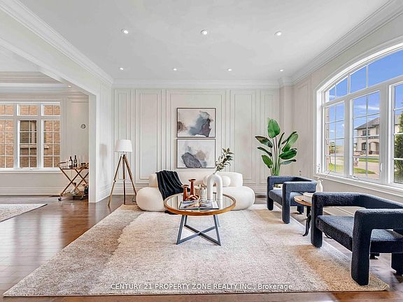 Welcome to this approx. 5500 above grade 5 bed, 5-bath luxury detached home in a prestigious Brampton neighbourhood, loaded with over $300K in premium upgrades and $150K in interlocking and landscaping. This masterpiece features 10 ft ceilings on the main floor and 9 ft ceilings on the second level and basement, along with a custom gourmet kitchen boasting a 12-ft island and walk-in pantry. The home is adorned with hardwood flooring throughout, an elegant oak staircase, pot lights, crown molding, wall paneling, and a custom fireplace feature wall. All bedrooms offer ensuite access, With a 3-car garage, expansive driveway, and a generous backyard, this show stopper is ideally located minutes from Caledon, Bolton, and Vaughan offering luxury, space, and exceptional value.