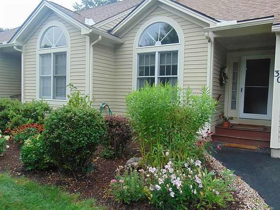 Showings begin on Sat. 8/19 at the open house from 2 to 4pm.. If a one level condo with an attached 2 car garage is perfect for your lifestyle this is quite a rare opportunity here in Keene. Besides being toward the end of a lightly travelled road you have very nice privacy out back. There is an established backyard garden that a new owner (not the association) will take over. The patio opens into a slider that leads to the sunroom/ den which gives you a quiet place to read, study, be creative or unwind. You can take pleasant walks around the neighborhood or use the seasonal pool and the clubhouse or join the nearby YMCA. The interior offers an expansive living room/ dining room with wood floors, 2 bedrooms, one with a walk in closet , and two bathrooms. This condo has central air conditioning. This Association has established their gas for heating etc. at a reasonable price. The kitchen cabinets and appliances are are about 4 yrs. old. The Summit Ridge Association monthly fee is $430. The upfront fee that the buyer must pay to the Summit Ridge Association at closing is $1290. You will no longer have to plow or shovel, paint the exterior of your condo, reroof it, go to the dump with your trash, or mow the lawn.. The Meadowview Knolls (required) fee for the pool etc. is $500. a year with $500. upfront at closing. Welcome to this upscale community with friendly neighbors!