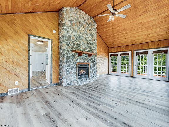 - Features: Fireplace, Ceiling Fan(s), Wood Floor, Bay/Bow Windows, Cathedral/Vaulted Ceiling