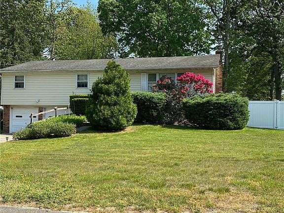 Great House... has all good sized rooms, larger than typical ranches. Open living room n dining room great for entertaining. Arch roof, vinyl siding all around. House needs updating but has great bones and space. Is clean n neat, Just move in and make changes how you prefer. New fridge, stove , washing machine, n kit sink w/ faucet. Ring bell n gar spotlight Full unfinished basement with outside entrance through garage. Lg 2 car garage. Hardwood floors as in din room under carpets. Basic Star refund is $1162. Don't miss this one!!