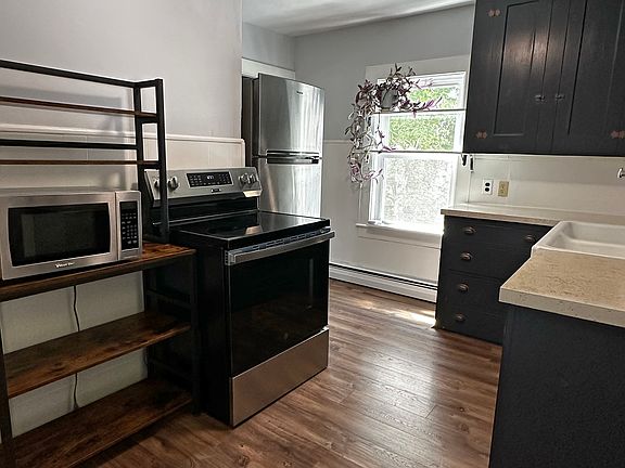 Entering from a private foyer, this 2nd and 3rd floor unit has a lot of natural light, large storage closet, farmer's sink, and new GE oven. Walk to dining, coffee shops, the Stone Church, Deciduous brewery, and schools. Rent includes electricity, heat, hot water, trash/recycling - you just pay internet. Two dedicated parking spaces in driveway are included. An easy 15-minute drive to 101, Portsmouth, UNH, & Phillips Exeter are within quick reach. No pets + no smoking. 1 yr lease.