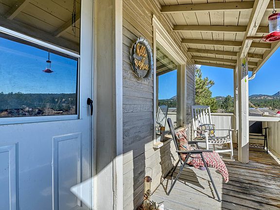 Great home in quiet Florissant neighborhood offering an abundance of listing space plenty of storage and acreage with no HOA. The main level master offers easy main level living with a beautiful living room that includes a stone-clad fireplace and all over gleaming hardwood flooring. The large eat in kitchen has been updated with a elegant cabinetry and appliances and features a huge breakfast bar that is all open to the living room. The remodeled master bath is just off the master suite that offers its own private deck. The lower level has its own family room perfect for gaming and two more spacious bedrooms that walk out to the main level. The home design is perfect to rent out the lower space or have extended family enjoy their own private space with their own entrance. It is tucked away so it is very quiet, yet a quick and nice drive into the beautiful Woodland Park area. It sits on nearly 2 acres so you will have your own space and peace and quiet. The home is very welcoming and the interior wood fits the mountain home perfectly. You'll appreciate the large detached building that is partially completed as auxiliary living space plus tons of added covered storage. There are several patio's to enjoy outdoor living, each with a unique feel and views. This home truly offers everything you want in a mountain home and is able to provide the peace and quiet you're looking for.
