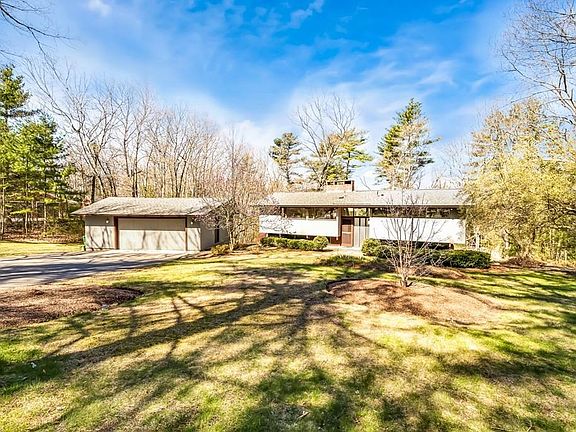 Set on over three acres at the end of a cul de sac, this sparkling four bedroom "Deck House" is a classic and elegant combination of oak, mahogany, cedar and fir, with accents of brick, stone and tile. The island kitchen is enhanced natural cherry cabinetry, soapstone countertops, gorgeous lighting fixtures, and stainless appliances, that opens onto a relaxed dining area. The living room with expansive raised fireplace and custom lighting opens to cedar deck which extends living space to outdoors, perfect for entertaining. Upstairs bath has custom built ins, granite counters, tumbled marble glass shower. Detached large garage has a nice path to mudroom entrance and huge backyard. Updates have included carpeting, windows with newer interior insulated features, highly efficient wood-burning enameled pellet stove, roof, 2014 4BR septic, Enjoy Dover-Sherborn's top-rated schools with its beautiful open space, trails, Farm Pond with beach & sailing.