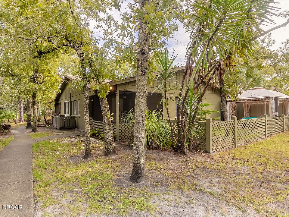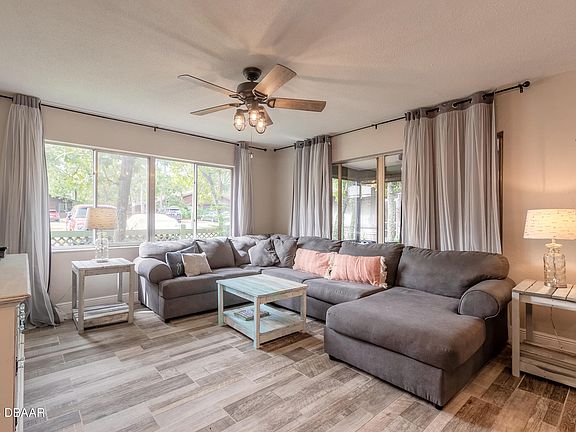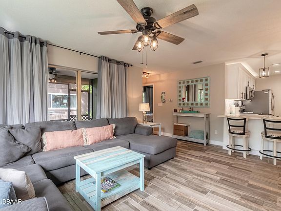 Price Reduction. You will love this CHARMING turnkey SF attached move in ready home w/ an inviting indoor/outdoor feel in the 55+ adult Community of Summer Trees West. Nice open floorplan with split bedroom layout. Stylish tiled floors throughout. w/ beautiful baths. Updated modern kitchen with Quartz countertops & Stainless Appliances. This unit is VERY attractively appointed & detailed throughout. Lots of windows to bring the sunlight in. You will love the screened patio and the very spacious outdoor area also for enjoying the outdoors under your Cabana. Maint. fee is only $130 monthly includes cable and WIFI, the community heated pool and lawn service. Miles of walking trails all throughout Summer Trees.. Shopping just 5 minutes away. Quiet & Peaceful in the HEART of Port Orange