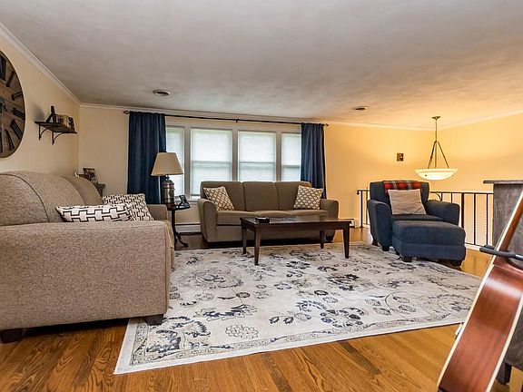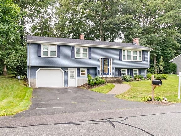 Amazing opportunity to find this big 3 bedroom 2 bathroom 1 car garage home on Sunset Drive. This home features recently refinished hickory stained hardwood floors throughout the living and bedrooms. The bright kitchen receives sunlight through the large center sky light, windows and sliding glass doors leading out to a private back deck. The center island provides a great place to enjoy a meal for a few or expand the table to the dining area with more room. Each bedroom has mirrored closet doors provides organized storage and saves wall space. The master features king size space and dual closets. The upstairs bathroom features dual sinks, stained glass window and a bidet. The downstairs offers a second living room with fireplace and built in book shelves. The additional lower level room makes a great guest room. The second bath doubles as a laundry too.This neighborhood is conveniently located 2.4 Miles to the Rt.495 intersection and 9.8 miles to the Forge park Commuter rail station.