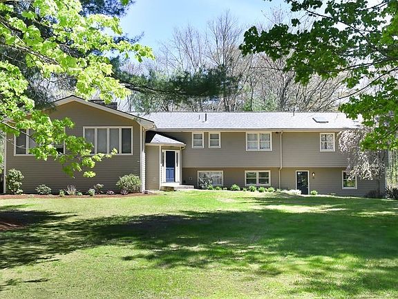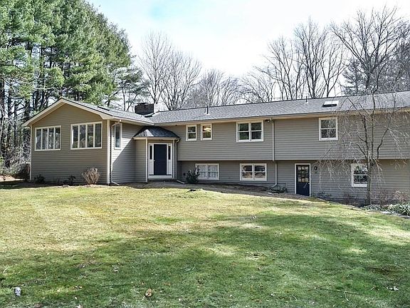 Calling all Nature Lovers! This bright and updated home is a perfect combination of nature,privacy,and style placed on 3 acres. Over-sized split level home on a cul-de-sac street.The cook in your family will love this dream kitchen w/beautiful cabinets, reclaimed wood island,open shelving and SS appliances. Oversized wall of windows in dining room is perfect for entertaining. Living room with featured wall, built-in bar and beverage fridge. Spacious master suite, 2 additional bedrooms.Fall in love with the 18x22 3-season oasis with featured wood ceiling w/attached deck.The lower level offers a bright walk out family room w/fireplace, game room, full bath, 4th bedroom, and walk in storage room.Large 2 car attached garage accessible by L/L mud room.The home offers an open and flexible floor plan with all the amenities you have dreamed of!! The neighborhood is ideal with steps to Hop Brook Conservation. Lots of recent updates. This is the perfect location for the buyer who wants serenity.