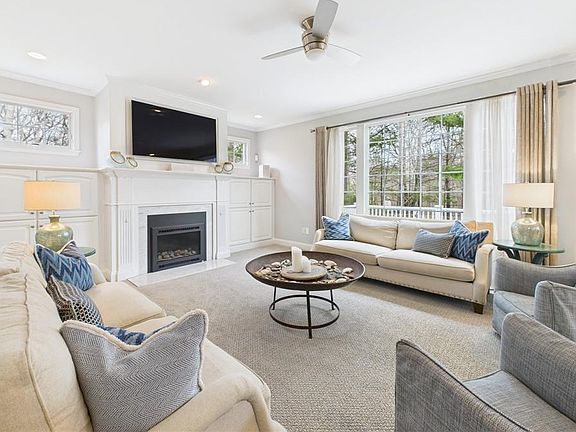 Classic New England style charmer in desirable Southridge neighborhood, this expansive 4-5 bedroom, 6-bath Colonial perfectly blends an airy, open modern feel with a freshly painted neutral palette. The newly redesigned eat-in kitchen boasts crisp white cabinetry, all-new appliances, a professional 6-burner gas stove, a spacious island with seating, beverage fridge for entertaining, and a home organization zone. It seamlessly flows into the casual family room with a cozy fireplace and built-ins. For more formal gatherings, entertain in the elegant dining and living rooms. The updated primary suite features a spa-like full bath with a soaking whirlpool tub, creating a luxurious retreat. The home also includes 3 additional bedrooms, one of which has an en-suite full bathroom for added privacy and comfort. A vaulted ceiling, beamed bonus room with a full bath and private staircase provides flexibility as a guest suite, live-in caretaker’s quarters, or a play/entertainment room. Finished basement offers additional living space with sliders to the yard. Step outside to an oversized new composite deck leading to the lush 2-acre lawn. Additional highlights include a dedicated laundry room and a large 3-car garage equipped with turbo-electric car charger. With underground utilities on a quiet, cul-de-sac street, this home is a must see!