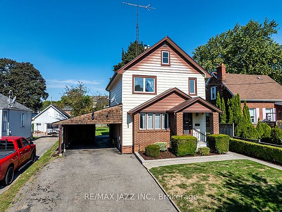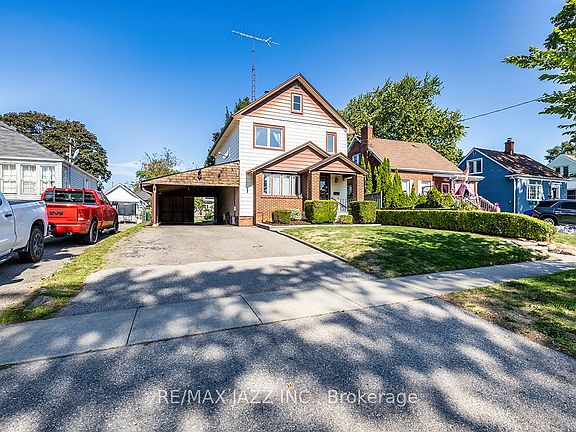 Fabulous 2-storey home on massive 44 x 135 foot lot. This home has been lovingly cared for and filled with character featuring original hardwood strip flooring, original wood trim and french doors. 3 full bedrooms on the 2nd floor, formal living and dining rooms, upgraded aluminum interlock roof with 50 year warranty to the buyer, furnace and air-conditioner replaced in 2020, high-efficiency hot water on demand, lovely front and rear gardens with additional storage shed and large patio, large carport and extra wide driveway. This home is move in ready. Great commuter location and only minutes to Lakeview park, waterfront trails and the 401. Do not miss this opportunity to get into the market!