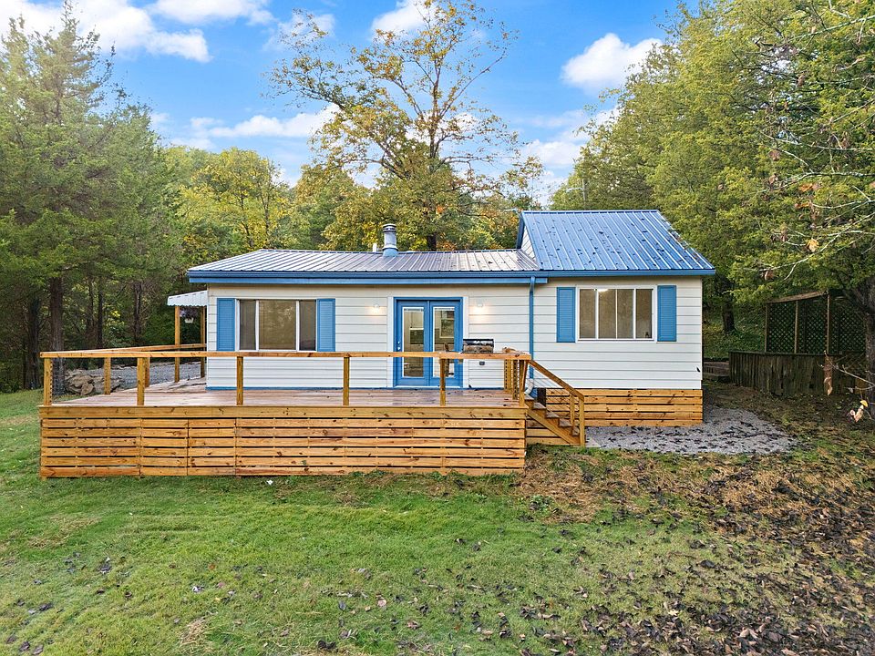Welcome to your peaceful escape at Timberwood Lake! Where the blacktop ends and peace begins. This beautifully renovated 2-bedroom, 1-bath lakefront home combines modern style with retro charm in one unforgettable package. Notice a newly built deck overlooking a spacious, tree-shaded lot that extends to the waters edge. Step inside to find gleaming hardwood floors flowing through the open living area and kitchen, where granite countertops, a classic subway tile backsplash, and thoughtful design details make this house stand out. The cozy wood stove in the living room adds warmth and character, perfect for curling up with a good book or watching the water glisten through the windows. This home reflects the care and craftsmanship that went into making it a personal retreat. It truly has to be seen to be appreciated. Outside, you'll enjoy stunning lake views and the peace and quiet that come from being tucked away at the end of a long gravel road. Here, traffic noise fades and tranquility begins. The property includes four lots, offering privacy and space to spread out, along with a large detached two-car garage located just across the drive. As part of the Timberwood Lakeshores Association, you'll have access to a private lake community, 3 bodies of water, and a clubhouse, where nature, beauty, and relaxation are part of everyday life. Come see this hidden gem for yourself. This property is made up of 4 lots/2 parcels. Lot numbers are 12, 15, 16,17. Lot size is approximate. Buyer to satisfy themselves with all information and lot size.