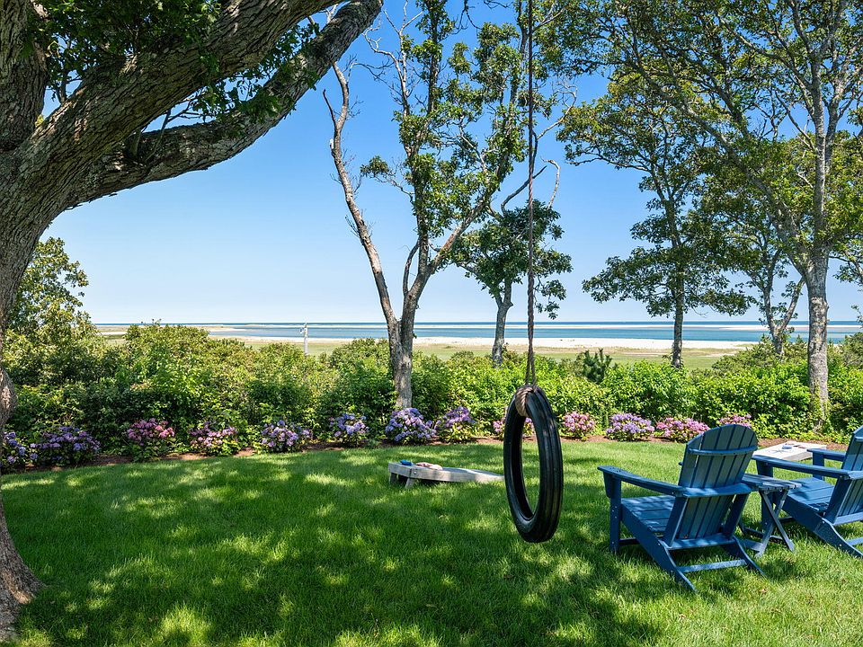 What. A. View! 180 degree panoramic water vistas over The Atlantic Ocean, Chatham Harbor, and picturesque Stage Harbor set the tone for this shingled style home located high on a hill on private Morris Island. Sweeping ocean views and a private association beach combine with 2.33 acres to create a luxurious yet comfortable coastal retreat located in the Quitnesset Association. Tastefully and completely renovated by the current owners, the home highlights graceful design, offering both public and private spaces. The living room is the centerpiece of the home with vaulted and beamed ceilings , fireplace with custom designed trim and warm wood floors. A stunning chef's kitchen with center island and dining area leads out to the expansive stone patio for al fresco dining and breathtaking water views. A first floor primary suite has a private full bath and walk in closets with an adjacent study. Four additional bedrooms and a second lower level media room complete the design. Monomoy Wildlife Refuge is near by and provides walking trails and bird watching venues