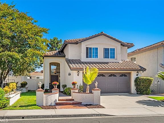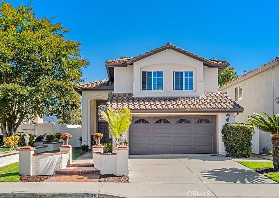 Gorgeously updated turnkey home in the highly sought-after community of Melinda Heights! Fresh exterior paint, beautiful palm trees, and custom landscaping, make this home’s curb appeal shine from the moment you arrive. This Spanish-style single-family home boasts 3 bedrooms plus a bonus room and 2.5 bathrooms across 1,890 sq. ft. of thoughtfully designed living space. Nestled on a 3,948 sq. ft. lot, this home perfectly blends comfort, style, and functionality. Step inside to the formal living room featuring travertine tile flooring, tall ceilings, and abundant natural light—an inviting space that flows seamlessly into the formal dining area with a custom light fixture and views of the backyard, ideal for entertaining. The family room boasts a cozy fireplace, French doors to the backyard, and is open to the dining area and kitchen. The beautifully updated kitchen features granite countertops, custom tile backsplash, rich dark wood cabinetry, stainless steel appliances, and breakfast bar seating—a perfect blend of elegance and everyday convenience. The main level also includes a stylishly updated powder room and dedicated laundry room. A custom wrought-iron staircase leads to the second floor, where you’ll find 3 bedrooms—including the Primary Suite—all with new carpet, new paint, and custom closet organization systems. Upstairs also features a spacious bonus room, perfect for a home office or 4th bedroom. The Primary Suite is a tranquil retreat with a large walk-in closet with built-ins and a beautifully updated ensuite bathroom featuring a dual-sink vanity and a walk-in shower with custom tile surround. The hall bathroom has also been tastefully remodeled with modern finishes and a walk-in shower. Additional upgrades include recessed lighting throughout, a professional Sonance sound system with built-in speakers, and custom window treatments. The private backyard oasis offers a large stamped concrete patio, lush landscaping, raised planters, patio cover, outdoor speakers, and views of Saddleback Mountain—the perfect setting for relaxation or entertaining. Enjoy access to exceptional HOA amenities, including 4 Jr. Olympic–sized pools, the Lago Santa Margarita Beach Club, tennis, pickleball, basketball, parks, and more. Ideally located near award-winning Melinda Heights Elementary, shopping, dining, and easy access to the 241 Toll Road, this home truly has it all.