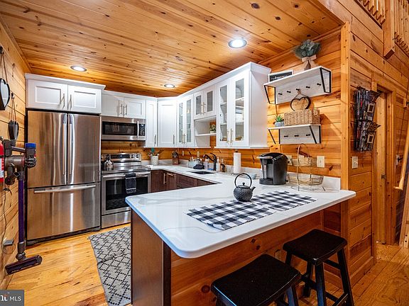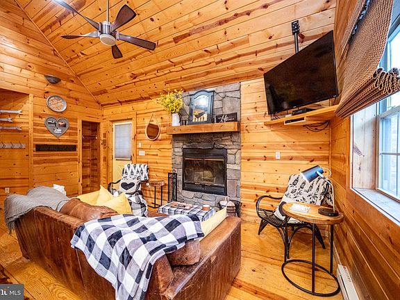 Love Shack in Yellowstone Village at Deep Creek Lake! Welcome to your mountain retreat! This beautiful 2-bedroom, 1-bath log cabin in the sought-after Yellowstone Village community offers rustic charm with all the modern comforts. Step inside to find a bright, open layout with vaulted ceilings, gleaming wood floors, and a stone wood-burning fireplace—perfect for cozy evenings after a day at the lake or on the slopes. The updated kitchen features new cabinetry, stainless steel appliances, and upgraded countertops, blending modern style with warm cabin character. A large loft provides additional space for sleeping, recreation, or a quiet retreat. Enjoy the outdoors year-round on the expansive covered front porch, or unwind in the private hot tub on the side deck, surrounded by privacy walls for a secluded spa-like experience. Comfort is key with air conditioning, ensuring you stay cool on summer days. Whether you’re looking for a personal getaway or a high-performing investment, this cabin delivers—an impressive Airbnb rental with gross annual income exceeding $50,000. This property is one of the few rental homes at Deep Creek Lake that truly cash flows, offering exceptional investment potential—and it can also be purchased together with the neighboring log home at 50 Village Drive, which would easily double your rental income opportunity. The condo association provides true maintenance and hassle free vacation home living as they take care of the home's exterior maintenance, insurance, mowing, plowing, and refuse! Ideally located just minutes from Deep Creek Lake State Park, marinas, shops, restaurants, and Wisp Ski Resort, this property offers four-season fun and exceptional convenience. Don’t miss your chance to own a slice of Deep Creek paradise—perfectly updated, beautifully maintained, and ready to enjoy!