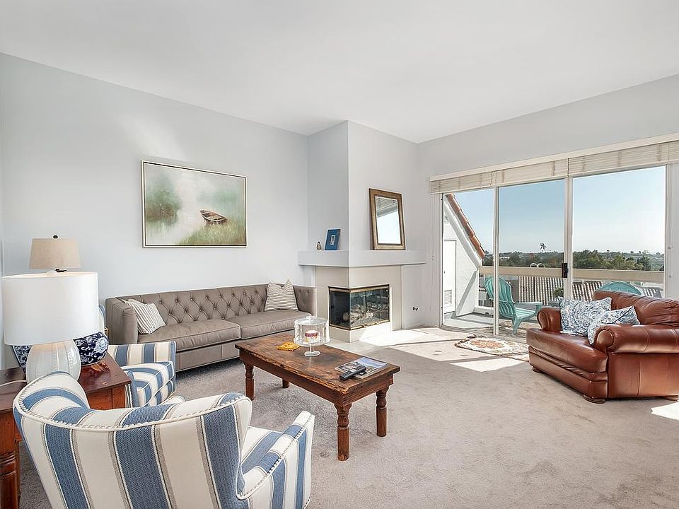 This fully furnished home enjoys incredible views of the ocean, Catalina and beyond from the living room, dining room and kitchen. Take in the exceptional Southern California sunsets while enjoying a glass of wine on the balcony. Recently painted and carpeted this condo offers a relaxing and tranquil setting to read by the fire on a winter's night. High ceilings and recessed lighting create an airy and spacious atmosphere to the home. The spacious kitchen boasts stainless steel appliances and plenty of storage and counter space. The secondary bedroom can be used either as an office or bedroom, with a large closet and custom organizers. The master bedroom is has hardwood floors, mirrored closet doors, and is large enough for a King size bed. The master bath has dual vanities, and basked in natural light from the skylight and a walk-in shower. In addition, the home has a one-car garage with a plenty of extra storage. The Encantamar community offers the security of a gated community and the convenience of nearby restaurants, shops and offers an unrivaled location that's near the Dana Point Harbor, world-class shopping, dining and some of the most spectacular beaches.