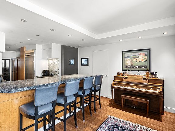 Welcome to 7AL, this beautiful corner unit has everything that a family needs. The foyer features a large walk in closet perfect for storing all your coats and shoes and big enough to fit a bike! As you enter the living room you find a large open plan living and dining space featuring custom cabinets throughout for additional storage and all your entertainment needs. The dining space can accommodate a table seating up to 8, with open views North looking out 5 large windows. The chefs kitchen has a large island with custom cabinets, large refrigerator and an additional pantry with custom sliding doors enough to store all your Costco purchases! Next to the pantry is a large wine fridge for the wine connoisseur. Next to the kitchen you will find your third bedroom which 4 windows with West and North exposures. Just outside the third bedroom you will find a large office space with custom cabinets for storage and a built in wall desk that also features Washer Dryer hookups next to a sink for all your laundry needs. In the office you will find a large cedar closet perfect for storing away off season clothing as well as a full bathroom. The bedroom wing of the house features a small shower stall bathroom, as well as a queen sized bedroom with large closet, and a corner king sized primary bedroom with custom cabinetry for additional storage as well as a giant walk in closet and its own Ensuite windowed bathroom.