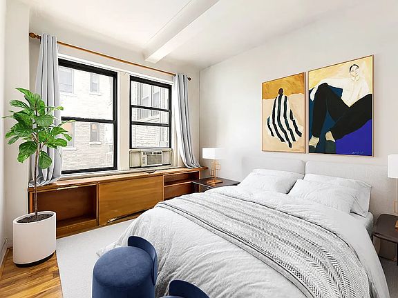 Enjoy pristine pre-war charm in this stunning Upper West Side condo just off Central Park, a sun-splashed south facing 3-bedroom, 2-bathroom home that exemplifies classic city elegance and design. Oversized sash windows let in an abundance of light, accentuating beautiful hardwood floors and airy beamed ceilings with chic molding. A series of custom built-ins add functionality and character, and a vented gas-burning fireplace with a whitewashed brick surround can be used all year-round. W\D can be added with board approval.