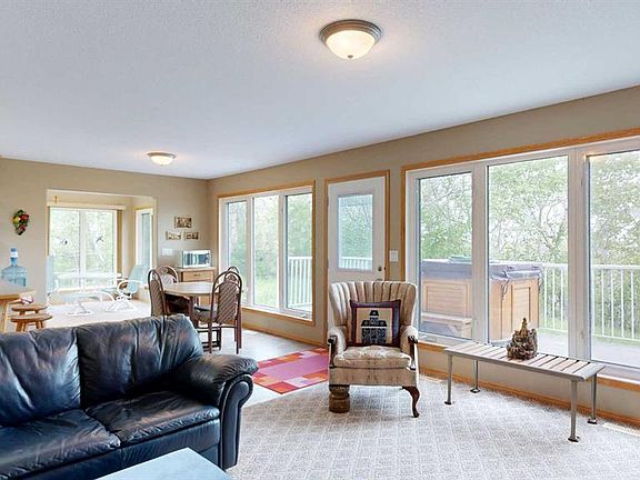 Nestled along the serene shores of Scenic Sands, this three-level lakefront home offers a lifestyle of relaxation and recreation. Designed with an open-concept layout, the home features multiple living areas and expansive, triple-pane windows that flood the interior with natural light. The main floor houses the kitchen, with wood cabinetry and a central peninsula which overlooks the dining room and living room. The windows offer a panoramic view of the lake and surrounding greenery. There is a patio door to the front deck and hot tub, where you can also have your barbecue or smoker, and set out your deck chairs and loungers. This level also has an amazing sunroom with windows all around. There is a bedroom, 4 pc bathroom, and separate laundry room with modern front load washer and dryer. The top floor has two spacious bedrooms under the vaulted ceiling. In one, you can step outside to the second story balcony, perfect for unwinding while watching boats glide by. There is a bright 4 pc bathroom as well. Downstairs, there are a number of open spaces which could be used for a variety of activities for the whole family. There is a bedroom and plenty of space for extra beds for family or overnight guests. The walk out basement provides direct access to the backyard. Outdoor spaces are a highlight, with a firepit area, cement paths and parking pad, beautiful fenced garden area, and garden shed. Native trees envelope this property so once the trees fully leaf out, you will barely see your neighbors. Whether it’s summer barbecues, cozy winter nights by the fireplace, or enjoying the changing seasons, this home offers a unique opportunity to experience lakeside living at its finest. Scenic Sands has great boating and fishing, paddle boarding and kayaking, swimming, natural beaches, playground, and plenty of green space giving you the opportunity for bird watching and hiking. Winter activities include ice fishing, snowshoeing, cross country skiing, and skating on the lake. Scenic Sands is only 17 minutes to Pheasantback Golf Course, 24 minutes to Stettler, and 55 minutes to Red Deer. A quick drive from the cities, this property is situated partway between Edmonton (2 hours) and Calgary (2 hours, 20 min).
