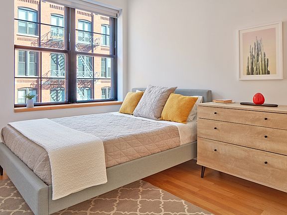Highly coveted 2BR/1BA home! This apartment features views of the Manhattan Bridge, East River and Manhattan Skyline! Corner apartment boasts doubled hung windows, with stunning south western exposure. Enjoy a stacked Bosch washer/ dryer for your convenience, stainless steel appliances, overhead LED track lighting, in sink garbage disposal, as well as hardwood flooring throughout. This advertisement is for informational purposes only, is not intended to create an agency relationship between a real estate licensee and the landlord and this advertisement should not be re-published. Required Fees: $20 Application Fee, 1 Month's Rent and 1 Month Security Deposit.