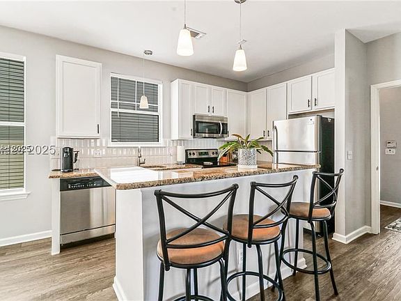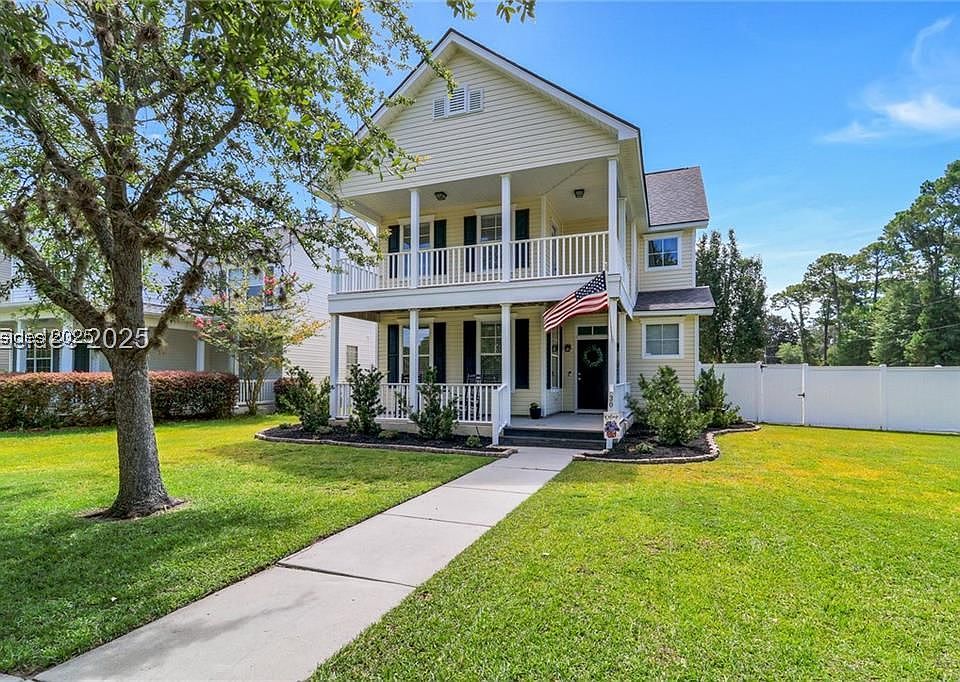 Charming two-story home in the heart of Old Town Bluffton, perfectly located on a desirable corner lot just minutes by golf cart to Oscar Frazier Park, shops, dining, and everything this vibrant community has to offer. This well-maintained home features a newer roof, luxury vinyl plank flooring, stainless steel appliances, and a screened-in porch for year-round enjoyment. The fenced backyard offers privacy and space to relax or entertain, and a rear car pad provides convenient off-street parking for guests or multiple vehicles. Upstairs, a private balcony overlooks peaceful lagoon views, ideal for morning coffee or evening sunsets. Whether you're searching for a primary residence, second home, or investment property, this home offers excellent flexibility and is located in a neighborhood with no short-term rental restrictions and strong rental demand.