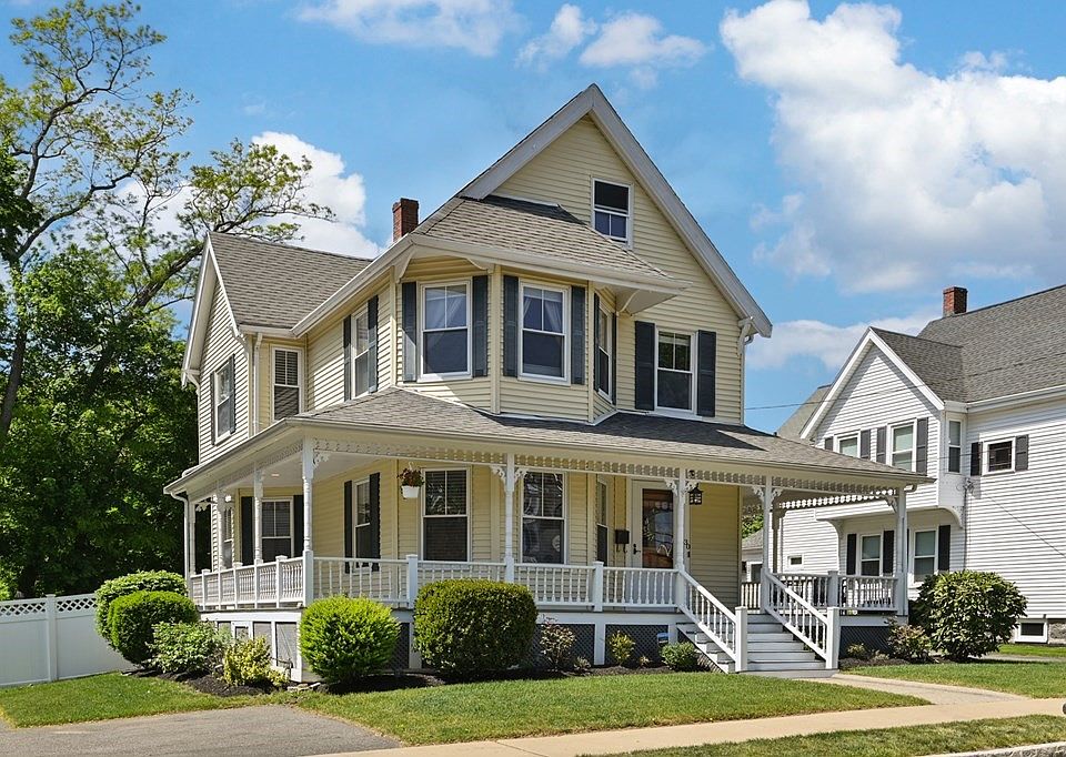 Stunning upgrades have been done to this beautiful Victorian w/an inviting wrap-around teak porch, a perfect place to sit & relax this summer! Spacious & sun-drenched open floor plan on the 1st flr w/soaring 9' ceilings & crown molding, formal living room, dining room, family room, renovated 3/4 bath & stunning Kit. The updated 2019 Kit has Quartz counters, SS appliances & plenty of counter space & cabinetry. A new slider leads out to the deck atop an expansive fully fenced-in backyard w/new stone patio area perfect for entertaining. Four bedrooms, full bath, convenient laundry & walk-up attic w/potential for expansion round out the 2nd flr. Tons of storage in the unfinished basement, C/A, 200 AMP elec., new lighting throughout, B-dry system (2022). The irrigation system keeps the lawn & gardens lush. Wonderful location; just a 1/2 mile to the commuter rail, easy access to the highway & to Downtown w/all the wonderful shops & restaurants. Just unpack & be in in time to enjoy summer!