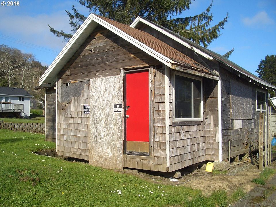 Fixer cabin on 50 x 100' lot with bay & bridge views available from 2nd level. Sewer & Water connected ($15,000 value and R-4 Zoning allows for a duplex. Close to downtown, Depoe Bay Harbor, whale watching, fishing, shopping and more!