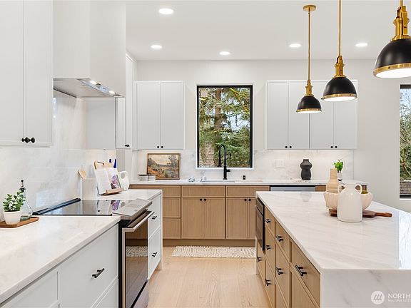 Experience the pinnacle of effortless luxury in this sun-drenched sanctuary, perfectly positioned within the highly coveted North Shore School District. Tucked away in a private setting with No HOA, this estate offers a rare combination of high-end finishes and ultimate convenience. Step inside to discover "insane" natural light cascading across gleaming hardwood floors. The heart of the home is a culinary masterpiece featuring top-of-the-line Cafe appliances and stunning marble waterfall countertops. Whether you are working from home in one of the two dedicated offices or entertaining, the flow is impeccable. The lower level is a marvel of versatility. Currently configured as a state-of-the-art home cinema with professional audio/video and a full wet bar, this space is easily adaptable as a luxe mother-in-law suite. Fitness enthusiasts will appreciate the private home gym, while the oversized bedrooms offer a true retreat for every member of the household. This is a true "Everything Included" sale—washer, dryer, and all AV equipment convey. Perhaps most impressive is the peace of mind: 5 years of professional landscaping maintenance is included, ensuring your grounds remain pristine without lifting a finger. With a spacious driveway, EV charging, and a location that is second to none—3 minutes to Fred Meyer, 10 minutes to Alderwood Mall, and seamless access to I-5 and 405—this is not just a home; it is a lifestyle upgrade.