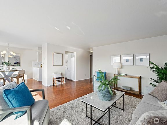 Unbeatable Downtown Edmonds location awaits in this move-in-ready unit at The Breakwater. 2 bedroom & 1.5 baths. Enjoy abundant natural light, a spacious living room with faux hardwood floors, and a private view deck. The home features an updated kitchen, pantry, dining room, & 2 comfortable bedrooms. The primary suite has double closet storage and a half bath. The Full bathroom has ample storage. The recently upgraded Breakwater building offers new siding, new slider doors, new windows, and new decks. Residents enjoy a secure building with a welcoming lobby, on-site laundry, game room, gym, covered parking, and private storage. Just blocks away from the beach park, ferry access, restaurants, cafes, art galleries and so much more!