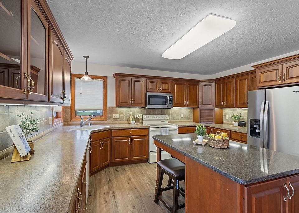 Back on Market - Major updates with same great price!! Many areas the wallpaper has been removed and all new laminate flooring throughout the dining room, kitchen, laundry and 1/2 bathroom! Welcome to this beautifully built and maintained mostly-brick ranch-style home, in the quiet community of Shelby, just a short drive from Columbus. Located on a peaceful dead-end street on the south side of town, this spacious property offers nearly 1,900 sq ft on both the main and lower levels—providing space for family gatherings and entertaining. Featuring 4 bedrooms, 4 bathrooms, and an oversized 3-car attached garage, this home is truly move-in ready. The inviting formal living room offers a cozy gas fireplace, while the primary suite includes a large walk-in closet and a private bath complete with a soaking tub. The kitchen is a showstopper, offering stunning custom cabinetry, a tiled backsplash, a corner sink, and a center island with granite countertops. Just off the kitchen, you’ll find a convenient half bath, laundry area, storage space, and a secondary stairway to the basement. Throughout the home, beautiful oak woodwork and solid oak doors add quality and character. The expansive garage includes built-in cabinetry, a storage closet, and two walk-out exterior doors for added convenience. Additional upgrades include a brand-new AC system (June 2023), Furnace (2013) and a new garbage disposal (2025). This home is being offered due to a job relocation—don’t miss the opportunity to make it yours!