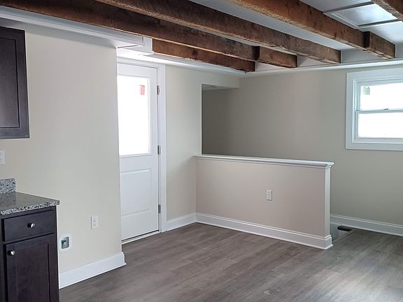 Easy to maintain vinyl plank flooring throughout. Kitchen comes with stainless steel stove, french door refrigerator, dishwasher and microwave. Beautiful original exposed ceiling beams in kitchen.