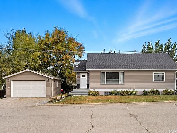 Situated on a large corner lot in Delisle, this 934 square foot home blends comfort, updates, and small-town charm. The front entry offers a practical drop zone and plenty of closet space, setting the tone for an organized and welcoming home. The main floor features an open-concept layout that connects the living room, dining area, and kitchen. Bright white cabinetry, a brand-new stove and dishwasher, and a refreshed sink and backsplash (2025) make the kitchen both cheerful and functional. The primary bedroom includes its own two-piece ensuite, while a second bedroom and a full four-piece bathroom complete the main level. The fully finished basement, completed in 2024, adds valuable living space and includes a new bathroom finished in 2025. Modern comforts like central air conditioning and a heated detached garage ensure year-round convenience. Outdoors, a large back deck with privacy fencing overlooks established perennial gardens, making it an ideal spot for both relaxing and entertaining. With the splash park, ball diamonds, and the golf course all just a short walk away, this property offers the perfect balance of quiet living and community connection. Contact your realtor today to arrange a private viewing
