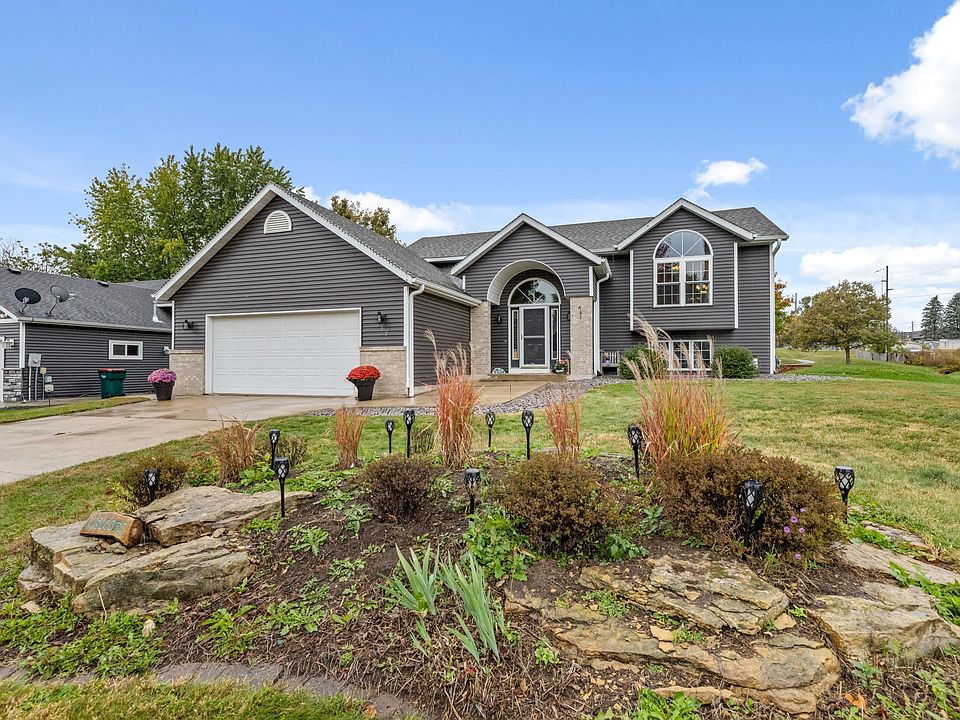 Stunning side-split in Six Oaks! Step into the large foyer which invites you up to the main living area with hardwood floors and into the living room with a grand, walnut surround, gas fireplace! Custom oak cabinetry in the open kitchen/dining areas. SS appliances. Sliding door to composite decking. 2 bedrooms on the main level. Basement hosts a huge family room with gas fireplace, full wet-bar with seating and office/den 'nook'. 3rd bedroom and 3/4 bath complete the lower level. Located right next to a walking path and City park. Brick accents and covered front porch welcome you home!