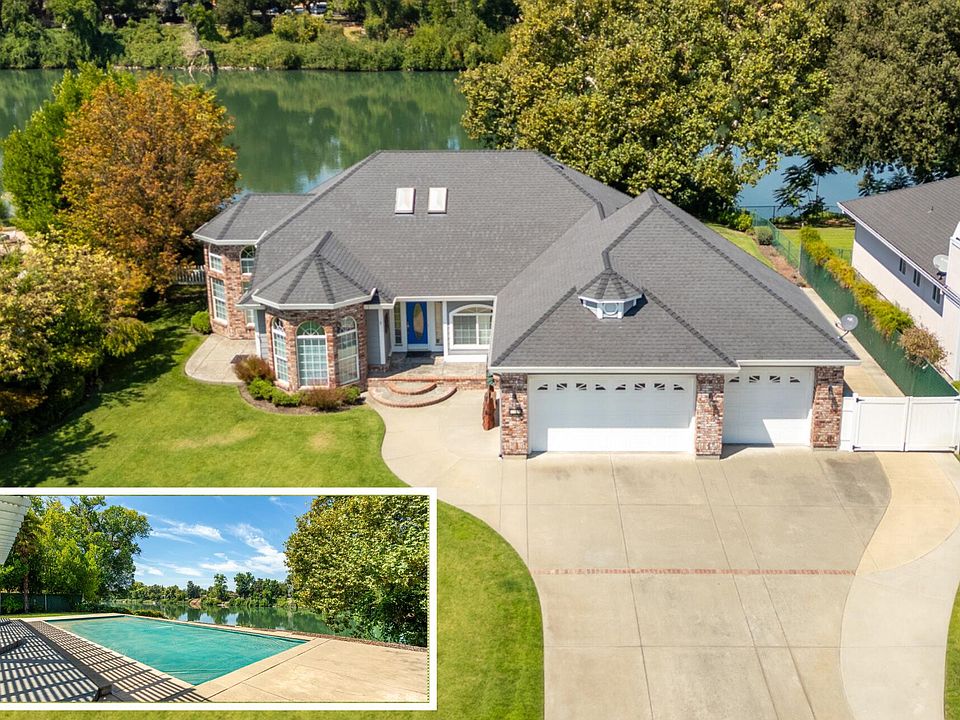 Experience RIVERFRONT living at its finest in this stunning 3 bedroom, 2.5 bathroom home located in the private GATED COMMUNITY of Rio Ranch Estates. Set on nearly 1/2 acre parcel, the property offers ONE OF A KIND panoramic river views. Inside, you'll find a meticulously maintained home with a separate living room and great room, formal dining with private patio access, and thoughtful upgrades throughout. Highlights include plank tile flooring, Hunter Douglas blinds, central vac, a jacuzzi tub with steam shower, stainless steel appliances with wine fridge, and bay windows that showcase the views. The 3-car garage offers a dedicated bay with 220v, and the home is topped with a new roof for peace of mind. The outdoor living is second to none—featuring a 40' Pebble Tec pool with Abalone fleck accents and swim shelf, a gourmet built-in BBQ, pergola-covered patio, and beautifully landscaped grounds. The river front landscaping was just Riprapped ($50,000+ investment)and landscaping is currently being repaired, new photos to follow. Additional amenities include an outdoor shower, RV/boat parking, and multiple patios designed for entertaining and relaxation.