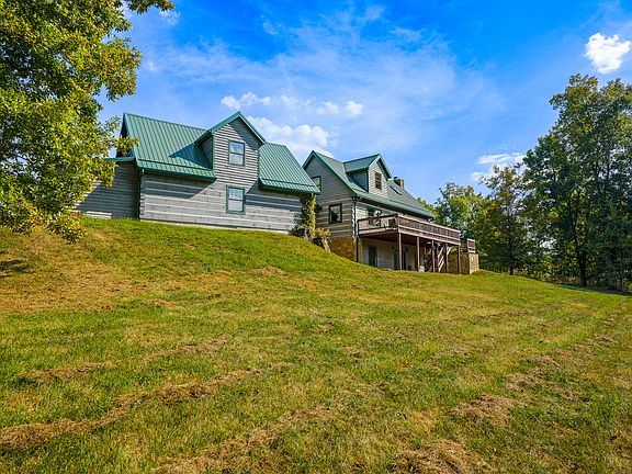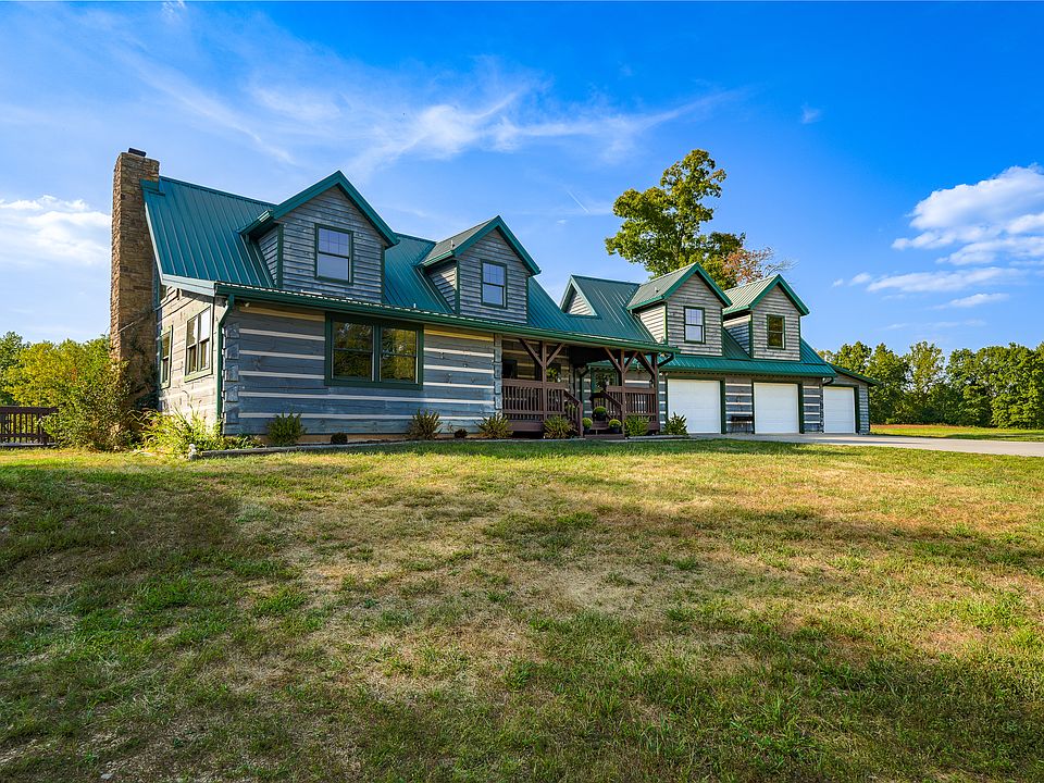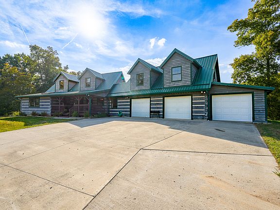 This one of a kind property offers a private air strip that is recognized by the Aviation Assn. Beautiful log home sitting on 39.53 acres. Home offers lots of beautiful wood to include oak, walnut & poplar along with a Brown County stone fireplace, cathedral ceilings in living room, what could be in-laws quarters above the 3-car garage. Very nice views from the house. Back deck overlooks nice 1 acre pond. 40x60 & 48x25 pole buildings along with a 16x32 building that have concrete floors and electricity. Sit on the front porch and enjoy the view. Water source is the pond with a filtration system. Each bedroom has it's own bathroom. Very private, you can't see another house from this home.