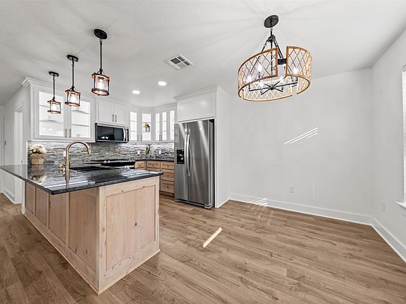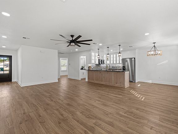 Charming Modern Farmhouse step into this beautiful newly built home featuring a modern farmhouse design with timeless details. The open-concept layout offers a bright and inviting living space, perfect for entertaining or relaxing with family. The kitchen boasts elegant finishes, ample cabinet space, and a large peninsula ideal for gatherings. Enjoy a spacious primary suite with a walk-in closet and a stylish en-suite bathroom. The split floor plan provides privacy, with two additional bedrooms and a full bath on the opposite side of the home.Outside, you’ll love the curb appeal, the stone accents and landscaped yard. The one-car garage and extended driveway provide plenty of parking and storage. Located in a quiet neighborhood close to schools, shops, and restaurants, this move-in-ready home combines comfort, functionality, and modern charm.