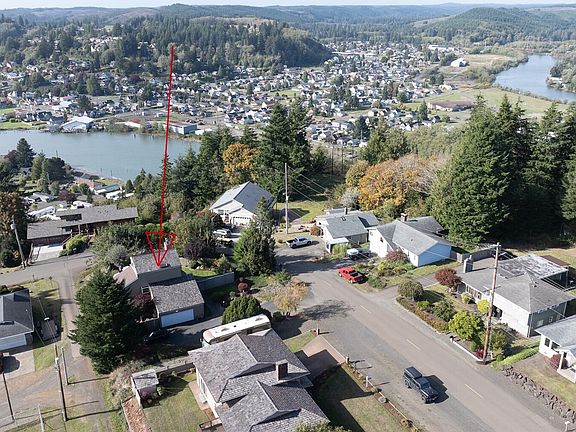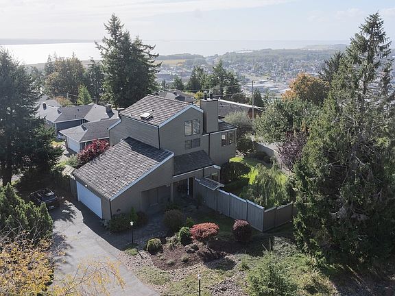 Northwest contempory view home. Situated on an extra large lot with views of the bay, river and city from all levels. Gorgeous sunrises and sunsets. Entry level has cozy family room that includes a wet bar and woodstove, two bedrooms plus a full bath with access to a roomy covered patio that includes a relaxing hot tub. 2nd view level has kitchen with eating bar, dining room, guest bath, livingroom with fireplace plus deck access. 3rd level includes primary suite with a ample-sized walk-in shower and double closets, plus walk out deck. Spacious yard has a privacy fence and is beautifully landscaped. Double car garage and large driveway with room for several cars plus a RV parking area with it's own driveway.