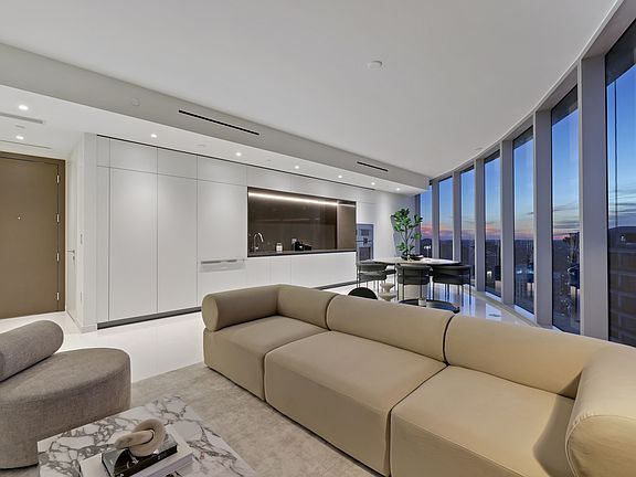 Most spacious 1 bedroom unit offered fully professionally furnished. Gaggenau and Bosch Appliances Through Out. 1 Year - Renewable. Sky Residence. Located 1 Floor Below Amenities. Semi Private Elevator. Only 3 Neighbors On Floor. View Virtual Tour. 1000MBPS Internet By MultiTronik LLC - Perfect for working from home. Black out shades in bedroom. Built out closets. Sheer shades in living room.