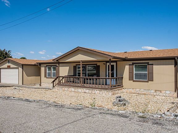You must see this 2001 Oak Creek Homes LP manufactured home containing 1664 square feet (per Gillespie Central Appraisal District property search information) with GORGEOUS SCENIC VIEWS FROM THE BACK DECK. This home is in the ever-popular Liveoaks 55+ adult land lease community surrounded by the park owners wide-open ranch land between Fredericksburg and Kerrville, making it perfectly situated to take in all amenities that both cities have to offer. A covered front porch entry greets you as you step into this split 3-bedroom 2-bathroom open floor plan with dining area adjacent to the living room providing an inviting space for gatherings with family and friends. The kitchen appliance package consisting of the refrigerator, dishwasher, range and microwave were recently installed (2025). Stylish flooring was also recently installed (2025) throughout as were other upgrades (also in 2025), too numerous to list in this description. The primary bathroom has separate sinks, a walk-in shower, and high-profile toilet. All the bedrooms have ceiling fans and walk-in closets providing great storage. The double car garage even has a storage/work area in back. Enjoy the scenic views from the rear deck. Couple all this with replacement of the roof in 2023. You are going to love this move-in ready home. Seller is offering a $2,500 allowance (per licensed contractor quote) to repair the back deck. The $500 current monthly lot lease covers community water, community septic and twice weekly trash pickup.