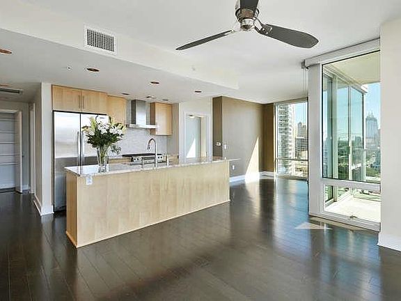 Welcome to Spring Condominiums located in the Market District of Downtown Austin. This is a beautiful southeast corner two bedroom, two bathroom unit with floor to ceiling windows and incredible panoramic views of both the city and Lady Bird Lake. Features includes a balcony, solid granite counters with artisan kitchen sink and Kohler faucet, custom hardwood floors, designer painted walls, and a walk-in shower in the main bathroom. Stainless refrigerator, gas cooking (paid by Landlord), washer & dryer, with black out shades in both bedrooms. Custom designer built-in main closet and the 2nd bedroom has a built in study area just perfect for working from home (Google Fiber now available and high speed internet ready) and features a million dollar downtown view. The unit includes two reserved parking spaces and optional storage. Amenities include a 24/7 fitness center, and a 24/7 front desk. Rooftop lap pool, 2 gas grills, private dining room, owners lounge, commercial kitchen and 2 guest suites. Premium location to Whole Foods and Trader Joe's, Lady Bird Lake and Butler Hike & Bike Trail. Call today for more details and a private showing.